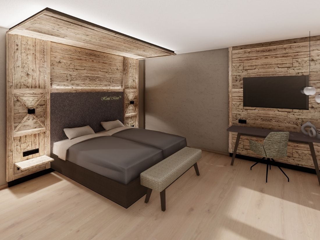 Our 36 m² double room “Dachsteinblick” accommodates 2 to 4 guests and offers a unique, direct view of the Dachstein mountains.